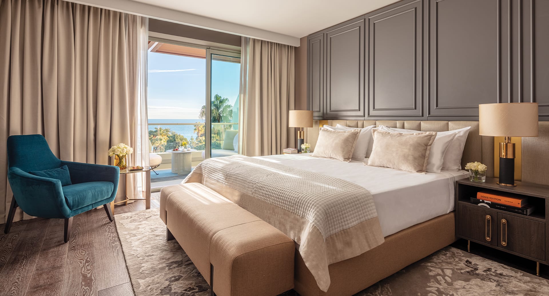 The hotel’s 151 suites and rooms facing the Mediterranean and Albert 1er gardens have all been newly redesigned and decorated in a contemporary style. In your room, you’ll experience luxury and sophistication inspired by the Mediterranean and the golden era of Côte d'Azur. Most of the rooms at this luxury hotel in Nice come with either a garden or a sea view and the majority have either a balcony or a terrace. Plus, the range of accommodation options is sure to suit your needs, with deluxe, premium, junior suites and large-scale suites all available.